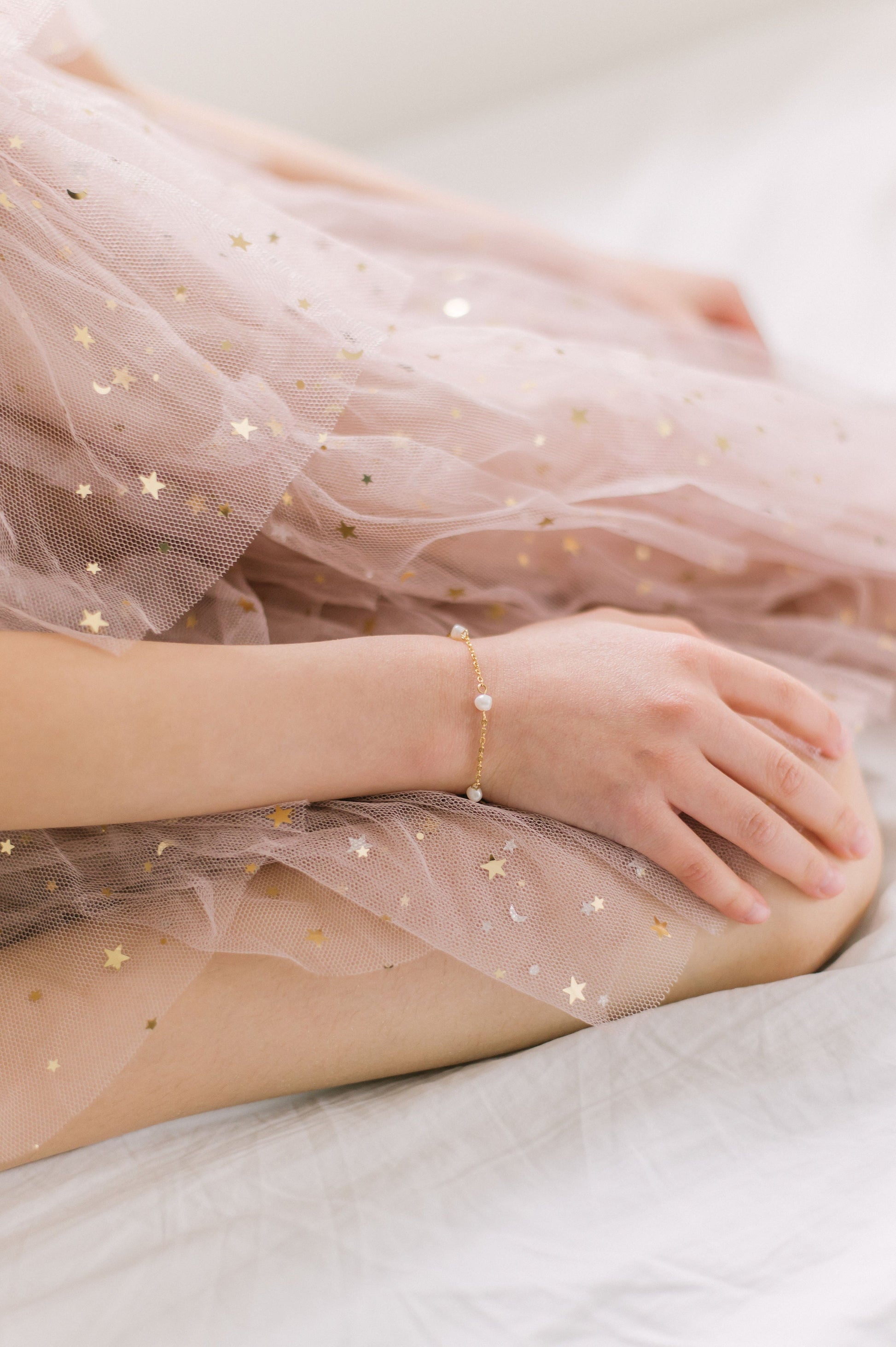 This has to be my favorite little girl bracelet we have launched! (I loved it so much I literally named it after my own daughter!) Meet the Evelynn Bracelet- She is such a feminine, dainty, and timeless style! It's made with 18k gold plated stainless steel and real freshwater pearls to be the absolute HIGHEST quality -aka hypoallergenic, waterproof, and tarnish free! Its just PERFECT. It will easily match everything in their wardrobe too! This bracelet features a half inch extender chain to grow with your child, and to give them a customized fit. And in case you're interested in matching... this bracelet is available in adult sizes too!