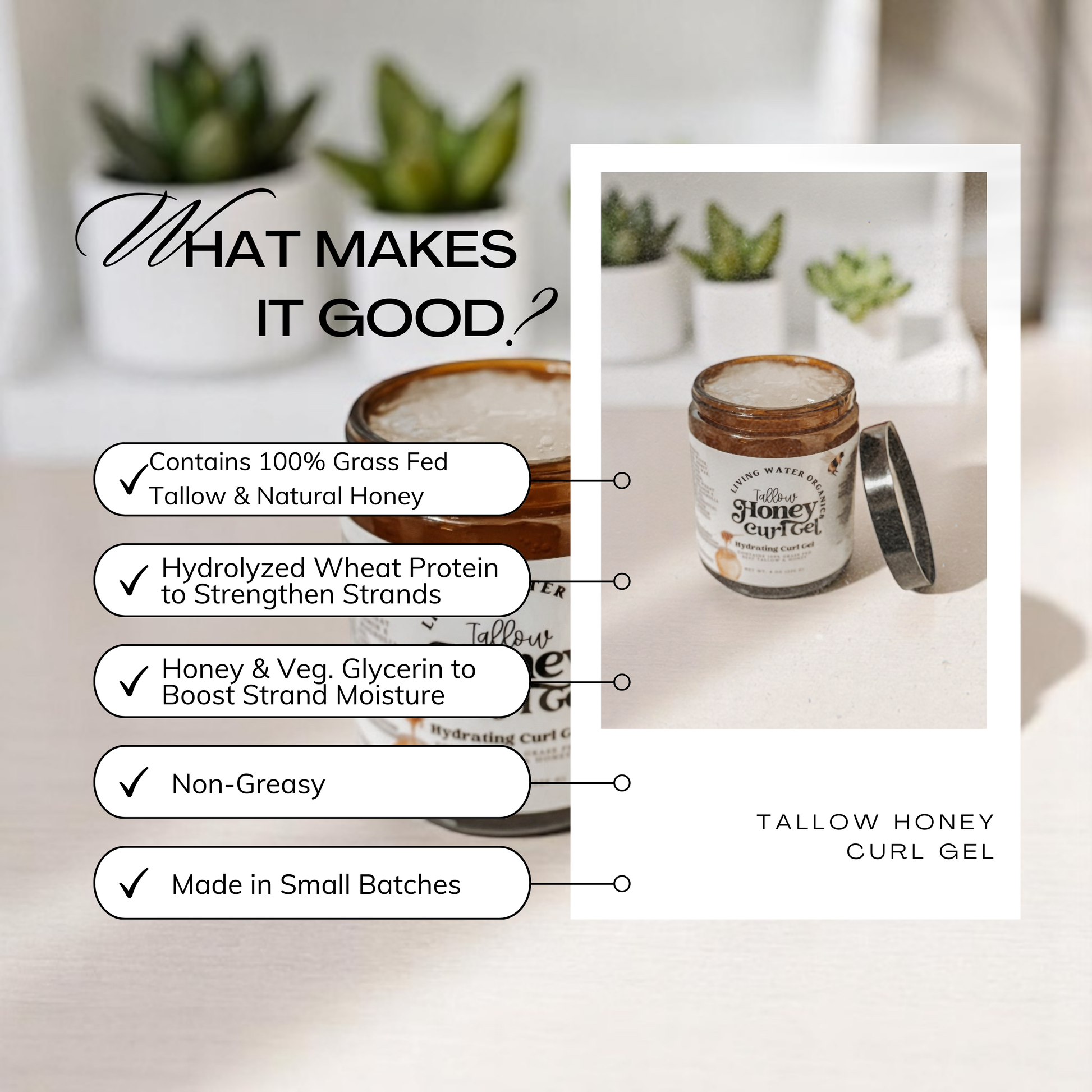 Tallow Honey Curl Gel with 100% Grass Fed Tallow (Medium to Strong Hold)