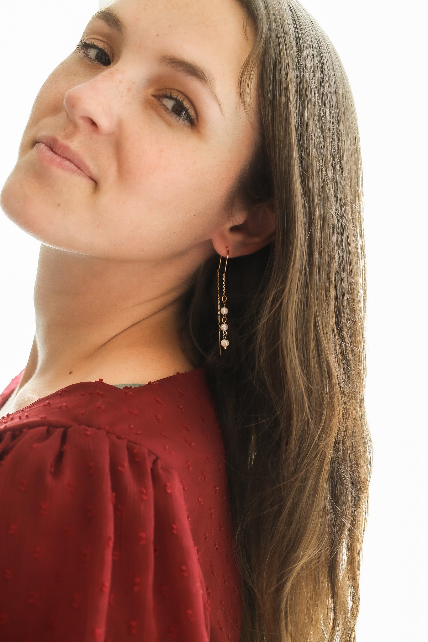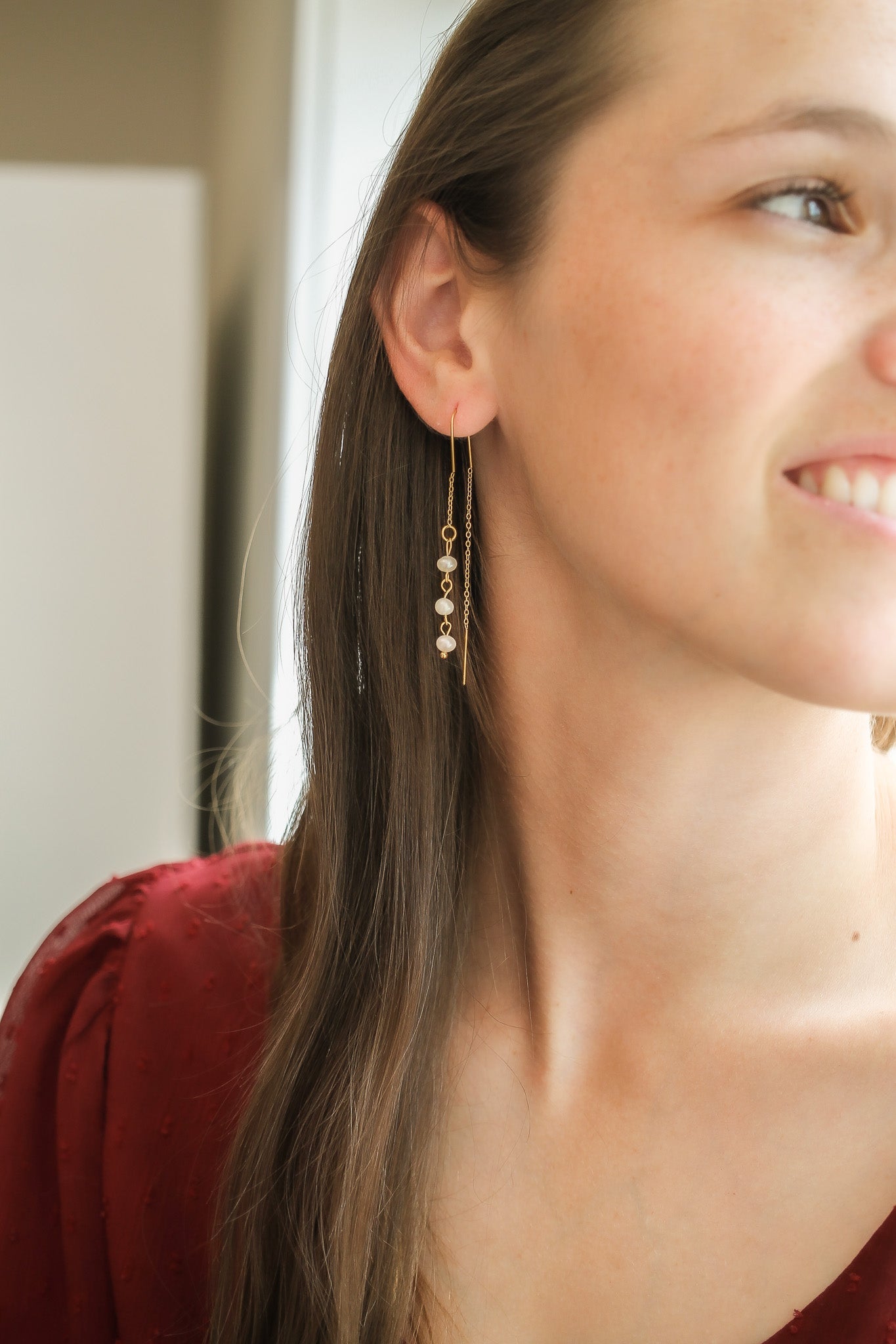 Not your grandmother's pearls! These dainty pearl threaders are everything! Not only are they super lightweight, they are also the highest quality! So you know they will last for years and yearsss to come. These are a great piece to elevate your everyday outfits, or you can easily have them be apart of your going out looks, church fits, or even bridal looks! These earrings are so fun and unique but are also so timeless, they will never go out of style!