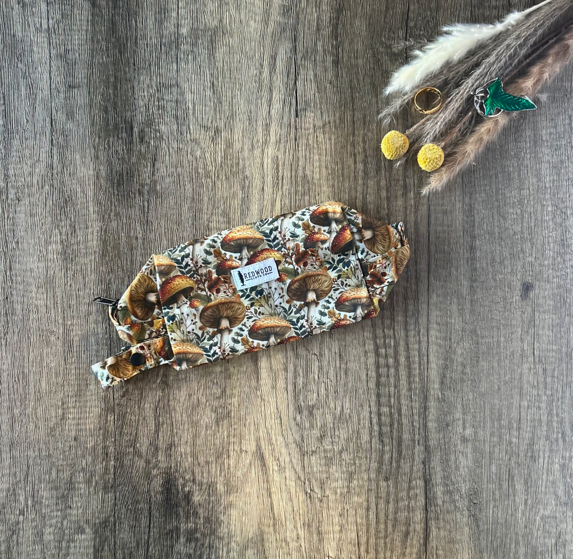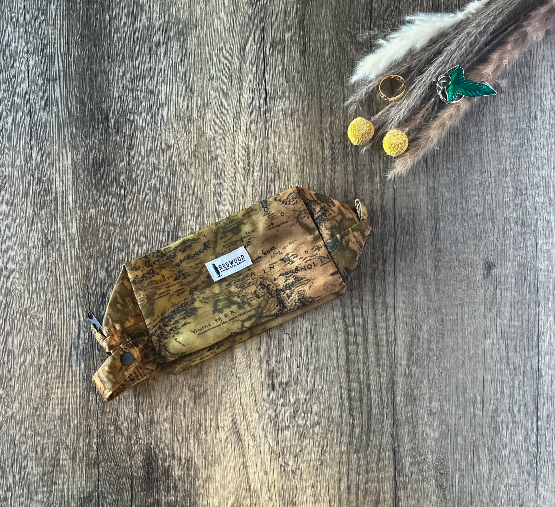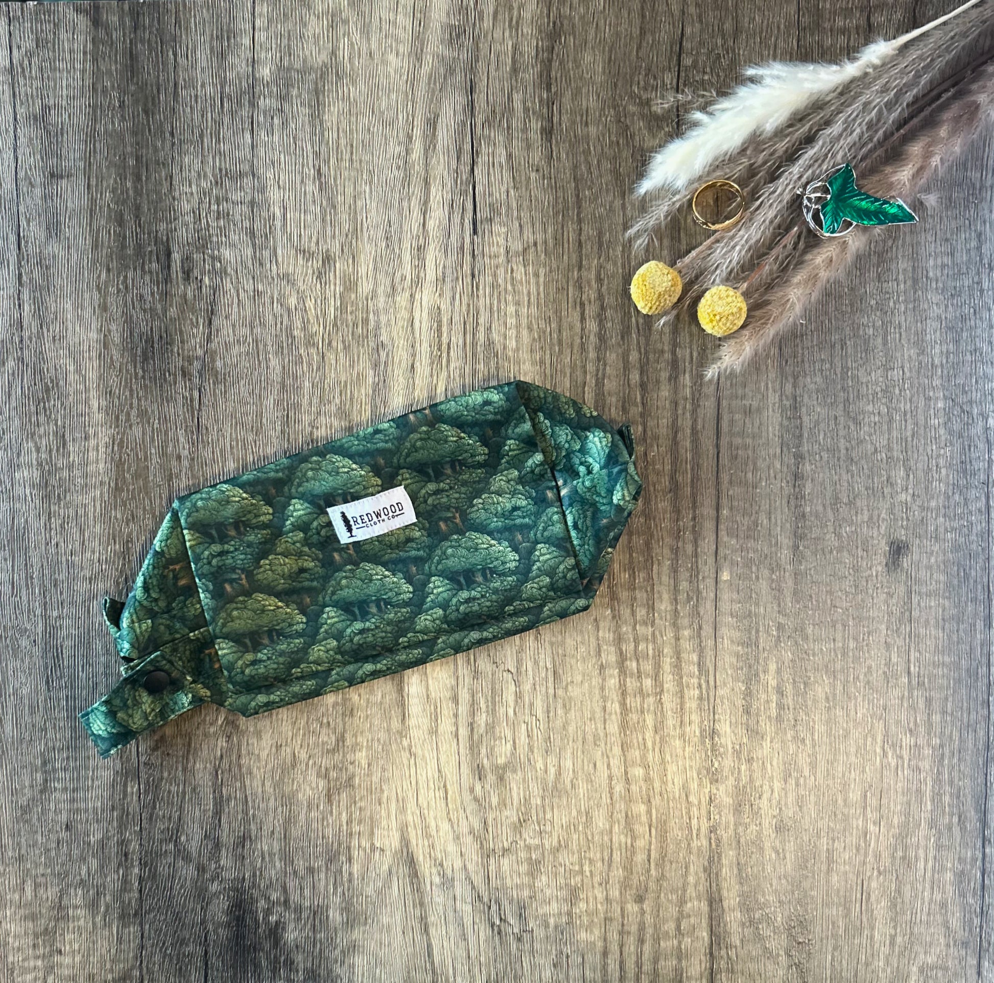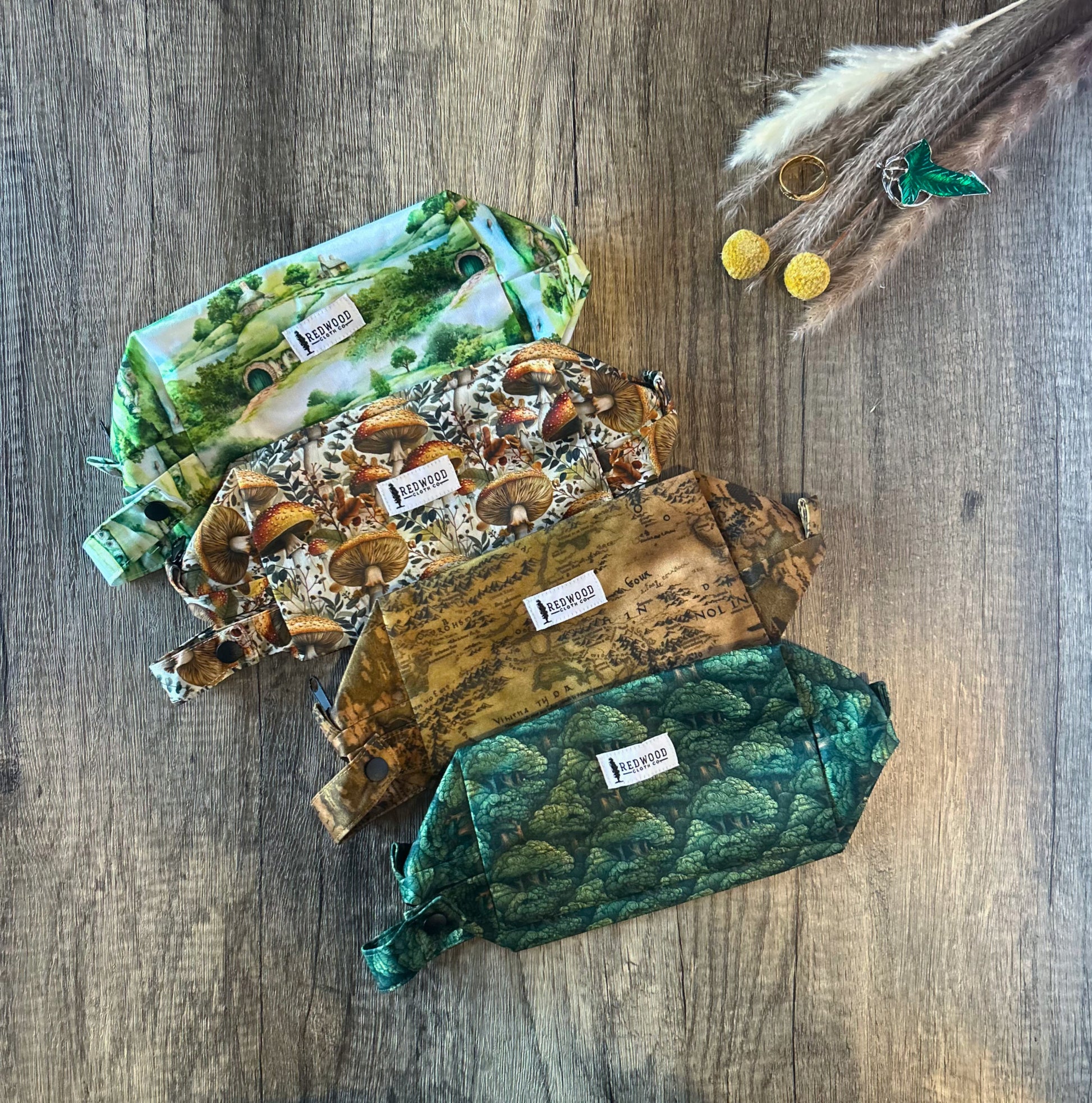 Our mini pods are made from a soft, durable PUL material, with a sturdy, black zipper. There is a handle with a snap for hanging.