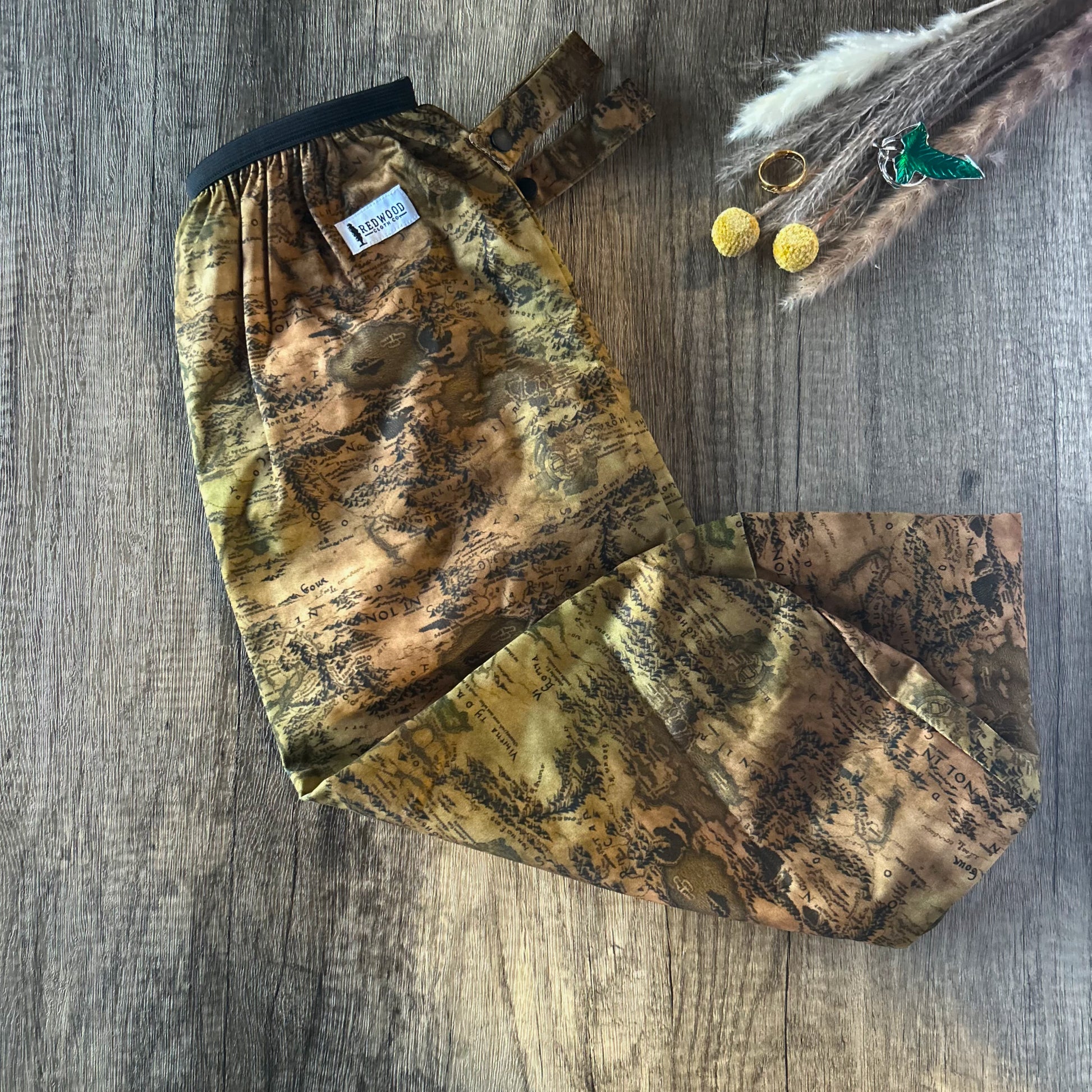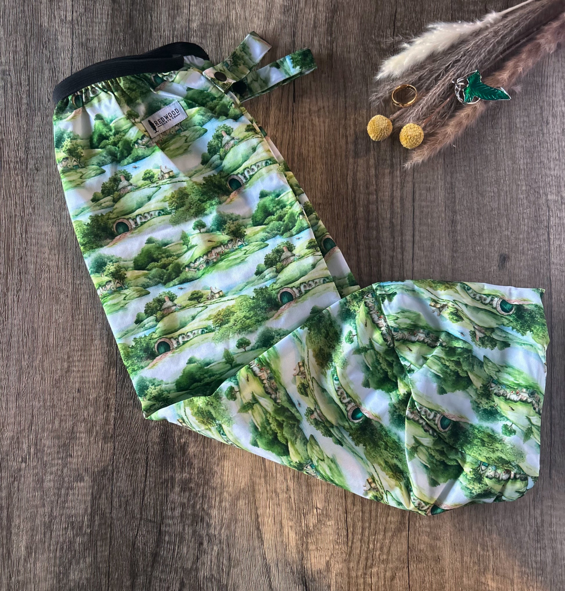 Our pail liners are made with a thick, durable PUL material, with a strong and sturdy black elastic opening. It has two PUL handles with snaps, perfect for attaching to rails and other hanging options.