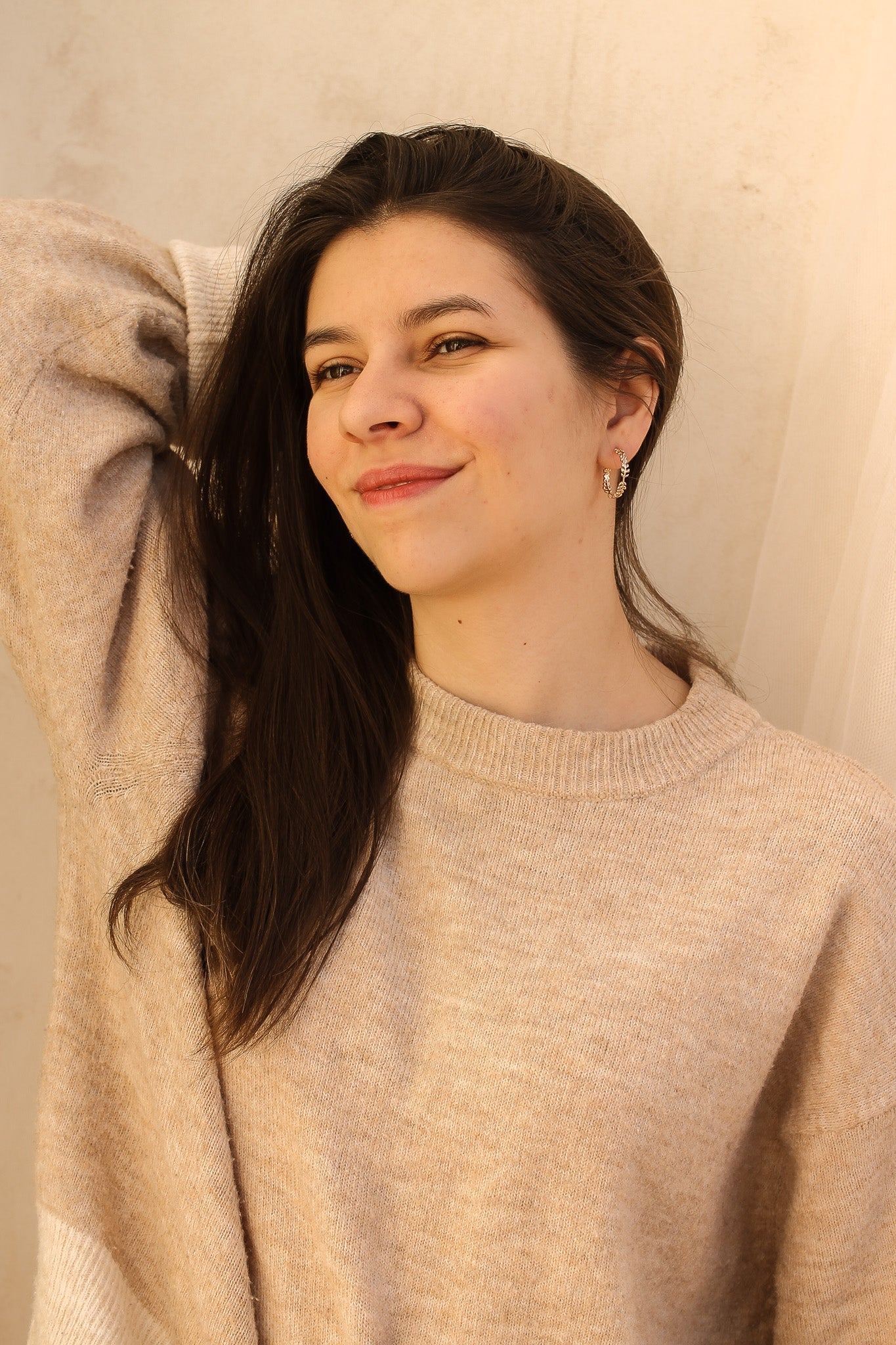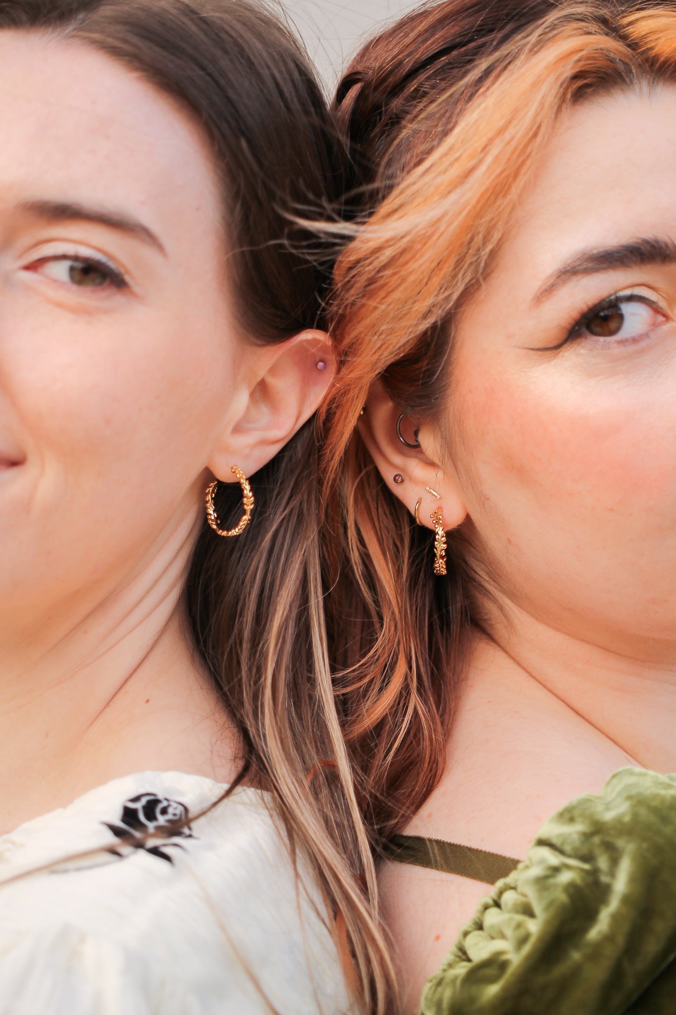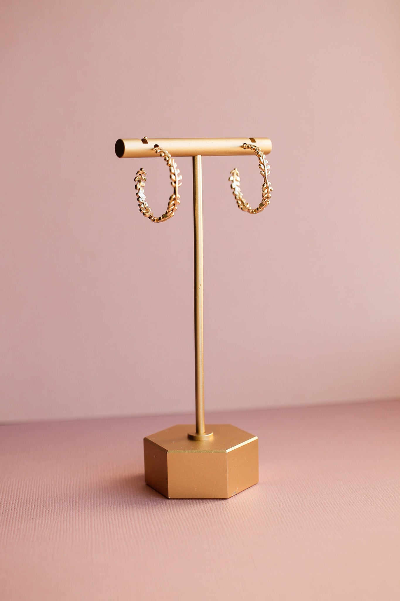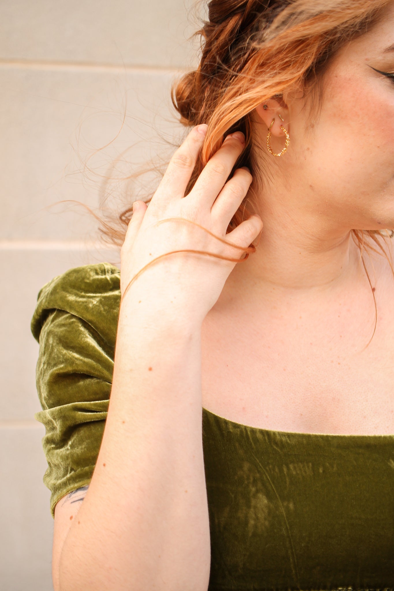 She is so dainty, the perfect size, and perfect for formal and casual outfits alike! She is a basic that is not at all basic. The laurel wreath branches give it more of an elevated and unique look than a traditional hoop, and it definitely makes the whole earring feel more feminine and ethereal too.