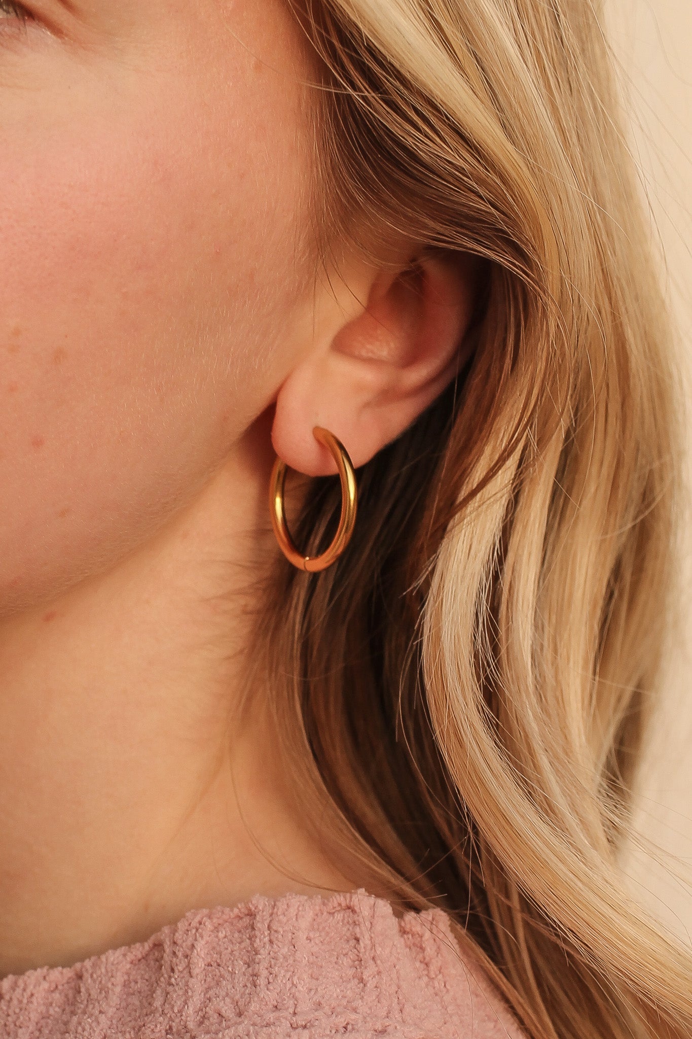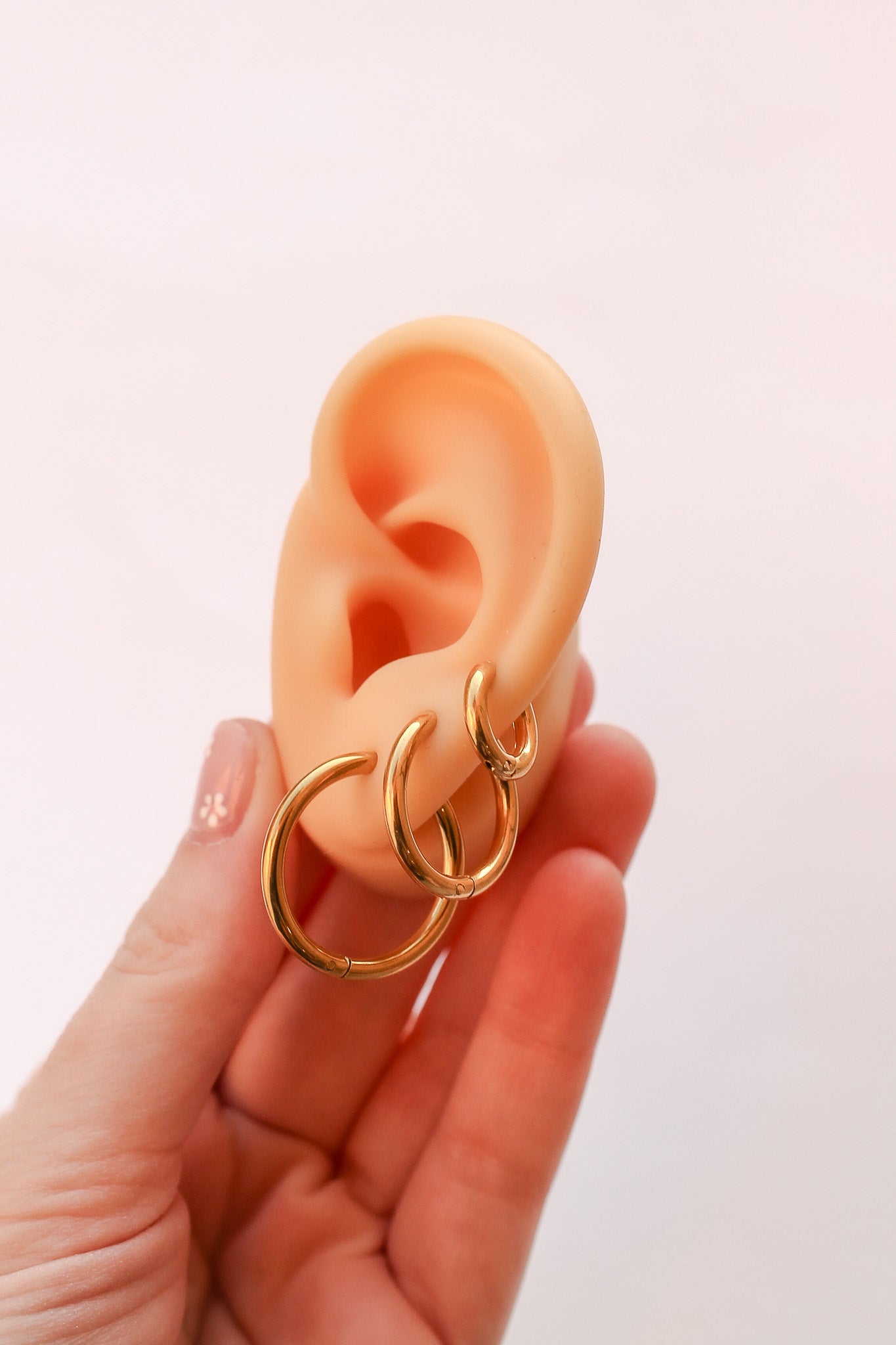 These are the perfect everyday hoop earring! You can COMFORTABLY sleep in these, plus, since they are waterproof, you can also shower and swim in these without worrying about them tarnishing or rusting! The smaller sizes are perfect for cartilage or second or third lobe piercings and the larger sizes are perfect for any lobe piercings. You can mix and match these to create the cutest ear stack or wear them along for a dainty, minimal look! We are obsessed with these at Rose and Clay HQ, so you absolutely NEED at least one pair of these in your jewelry box!