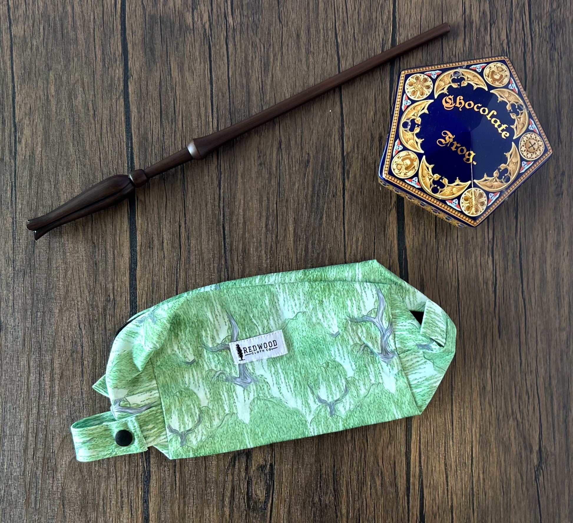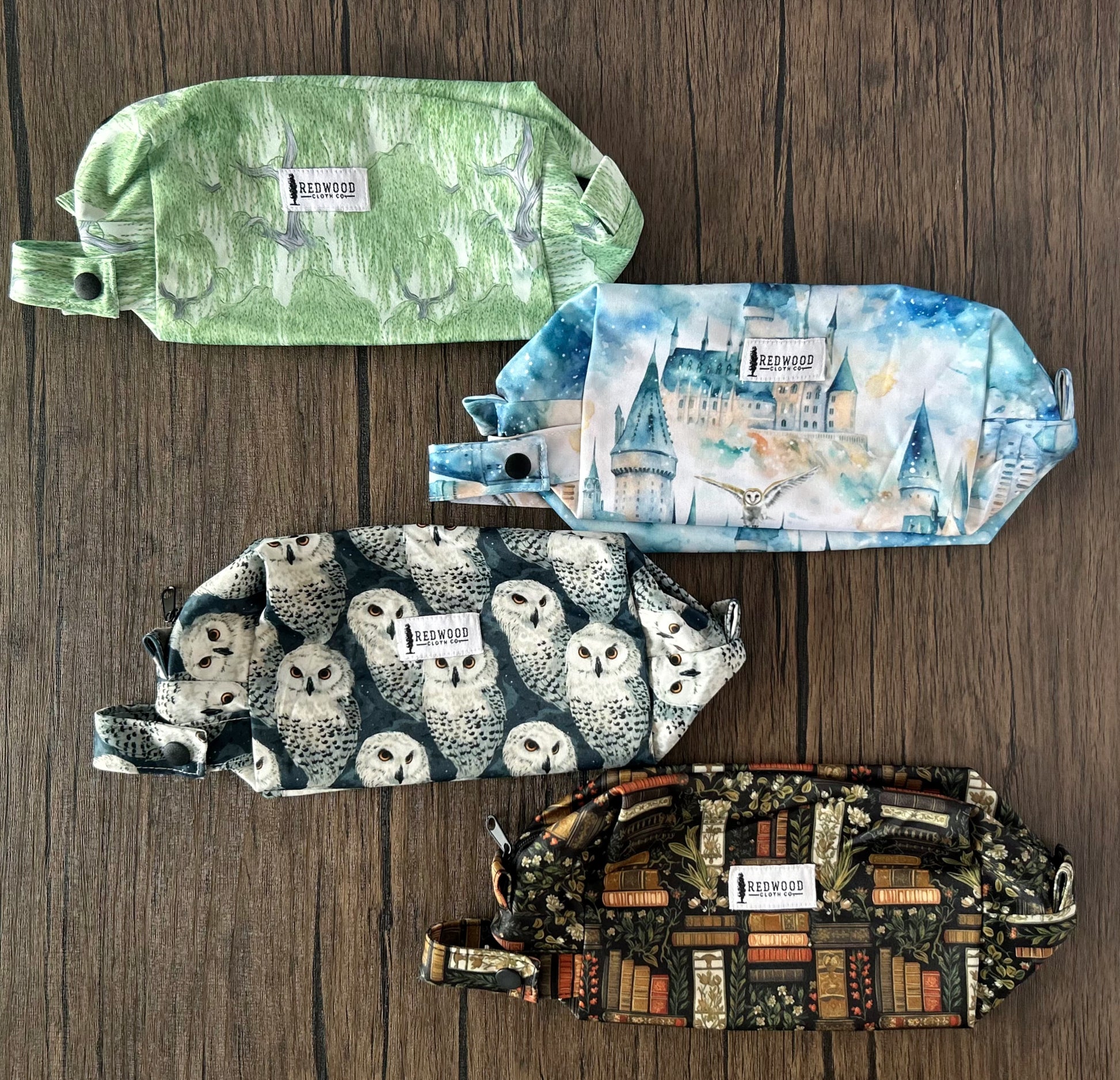 Our mini pods are made from a soft, durable PUL material, with a sturdy, black zipper. There is a handle with a snap for hanging.