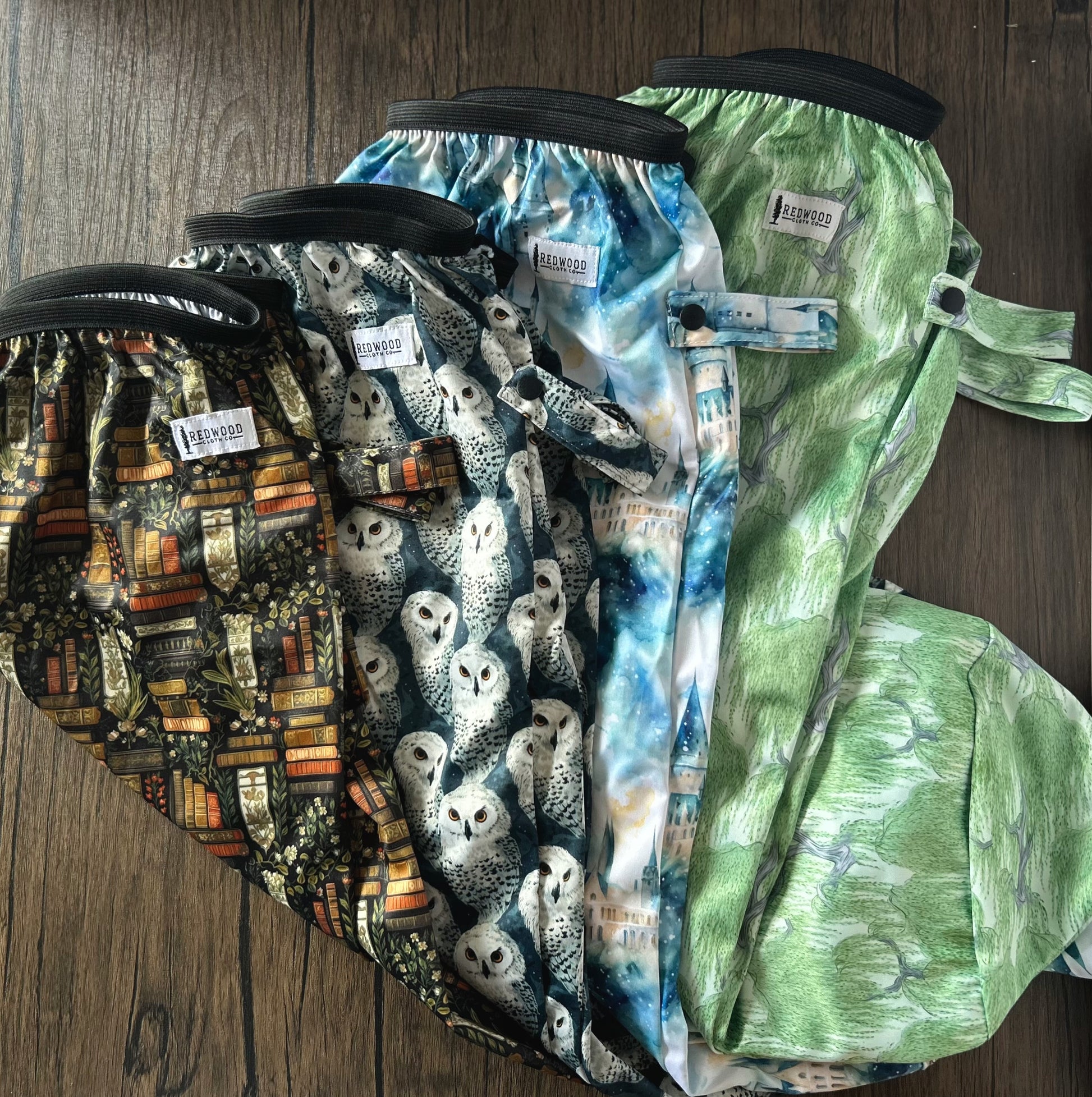 Our pail liners are made with a thick, durable PUL material, with a strong and sturdy black elastic opening. It has two PUL handles with snaps, perfect for attaching to rails and other hanging options.