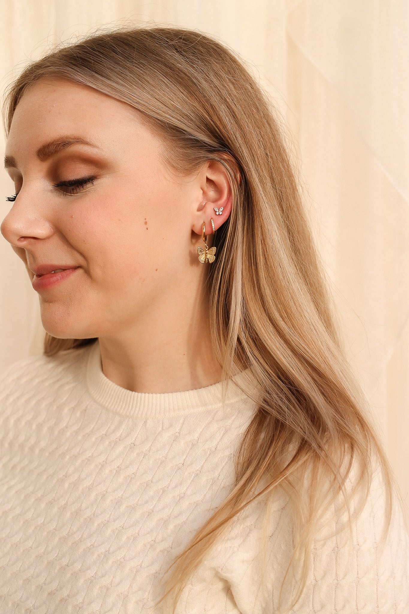 Meet the new and improved butterfly huggie hoops! We have revamped our best selling earring to make it even better. The biggest thing we upgraded was the metal (to PVD plated stainless steel) so that it would be tarnish free, and waterproof like the rest of our jewelry!