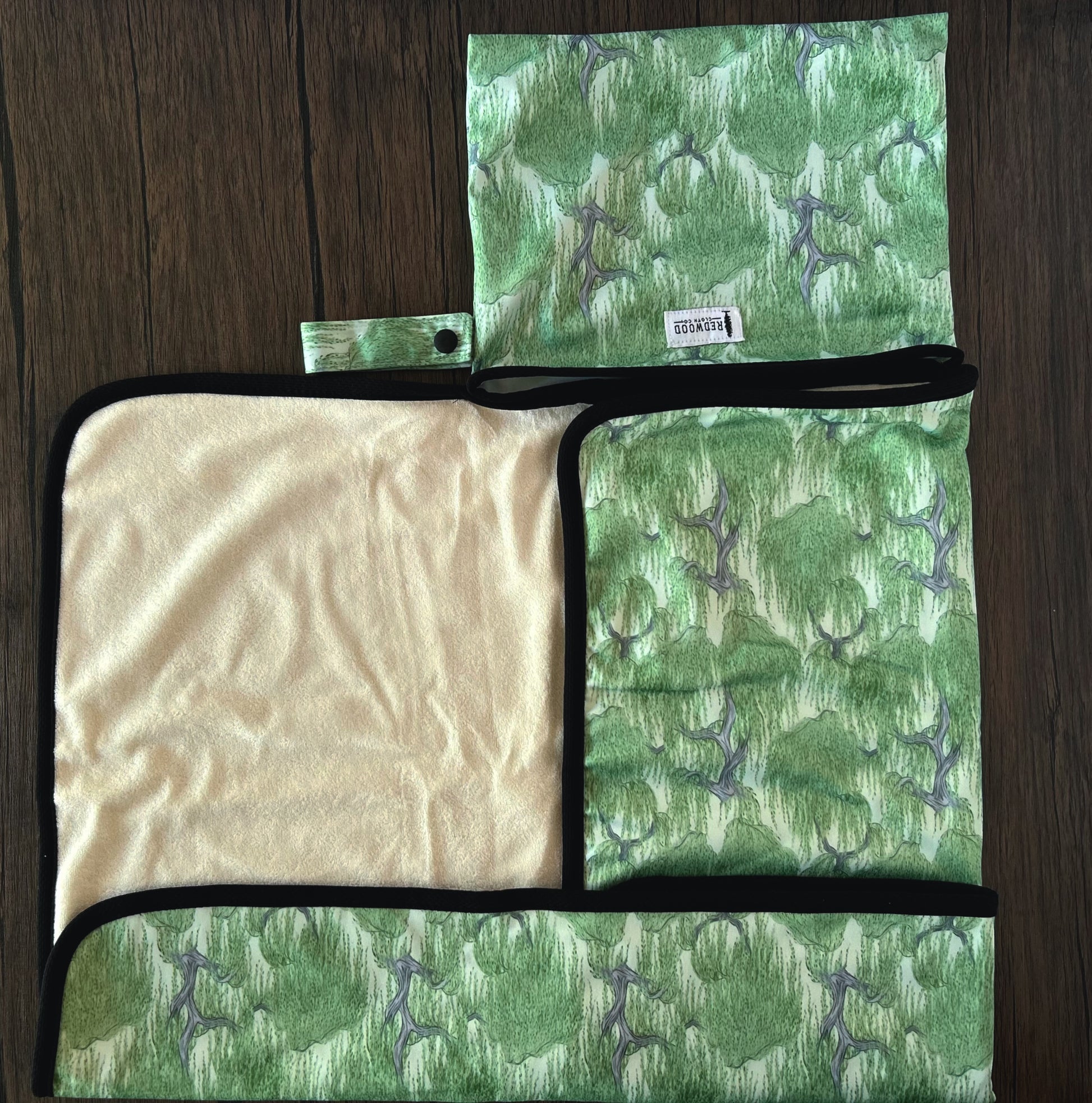 This generously sized changing mat is made from wipable PUL fabric on one side and soft, bamboo terry on the other. Perfect for changing baby on either side depending on the environment.