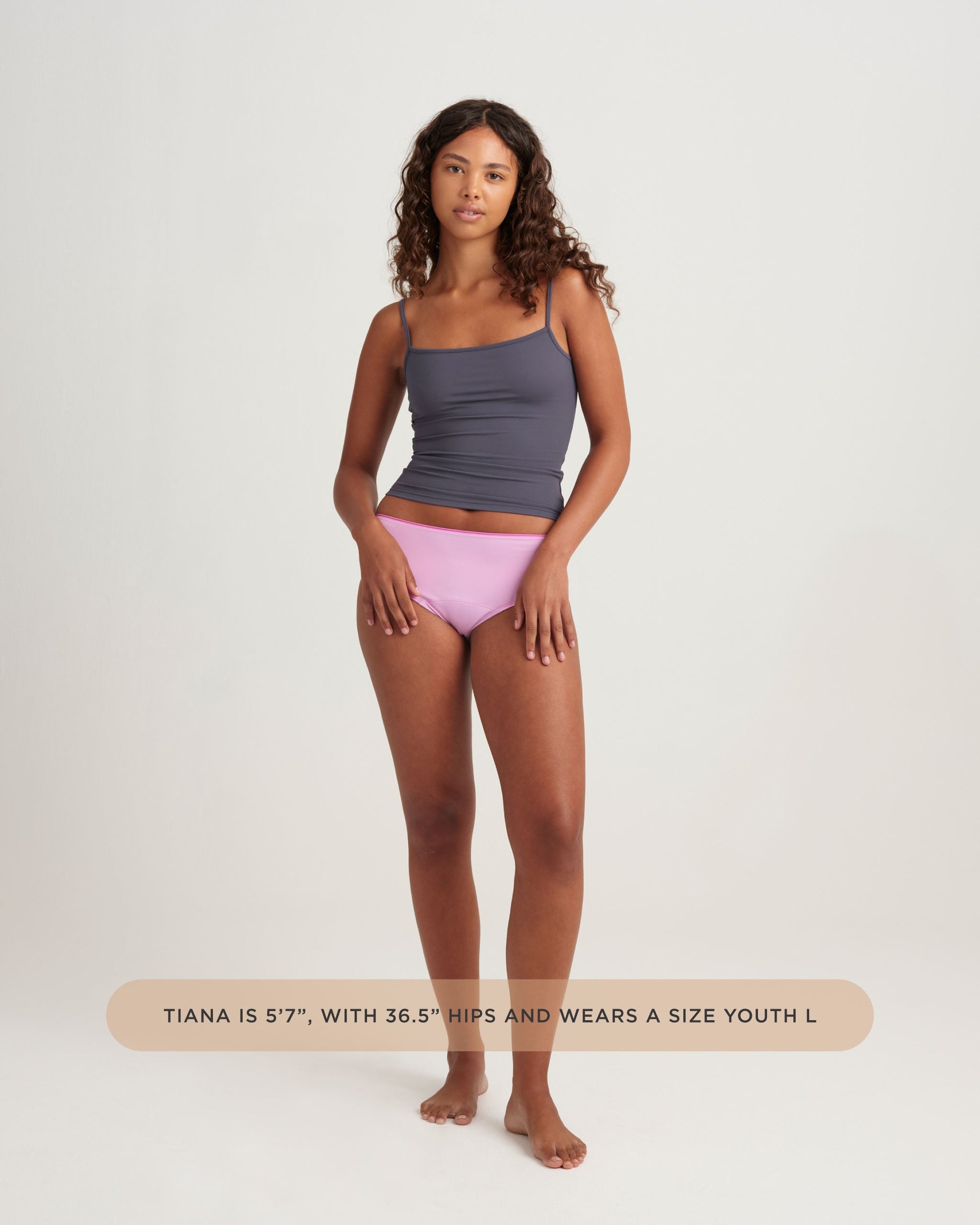 The absorbent tech you trust, now in a full-coverage teen style that will inspire confidence (and good study habits—probably). Stay comfy and dry with reliable leak-free protection made to withstand test days, heavy flow days, and overnight sleepovers. Made with soft-stretch, lightweight nylon and spandex, this fabric moves with you and won't hold you back. Toss a clean pair in your backpack to be ready whenever your period shows up.