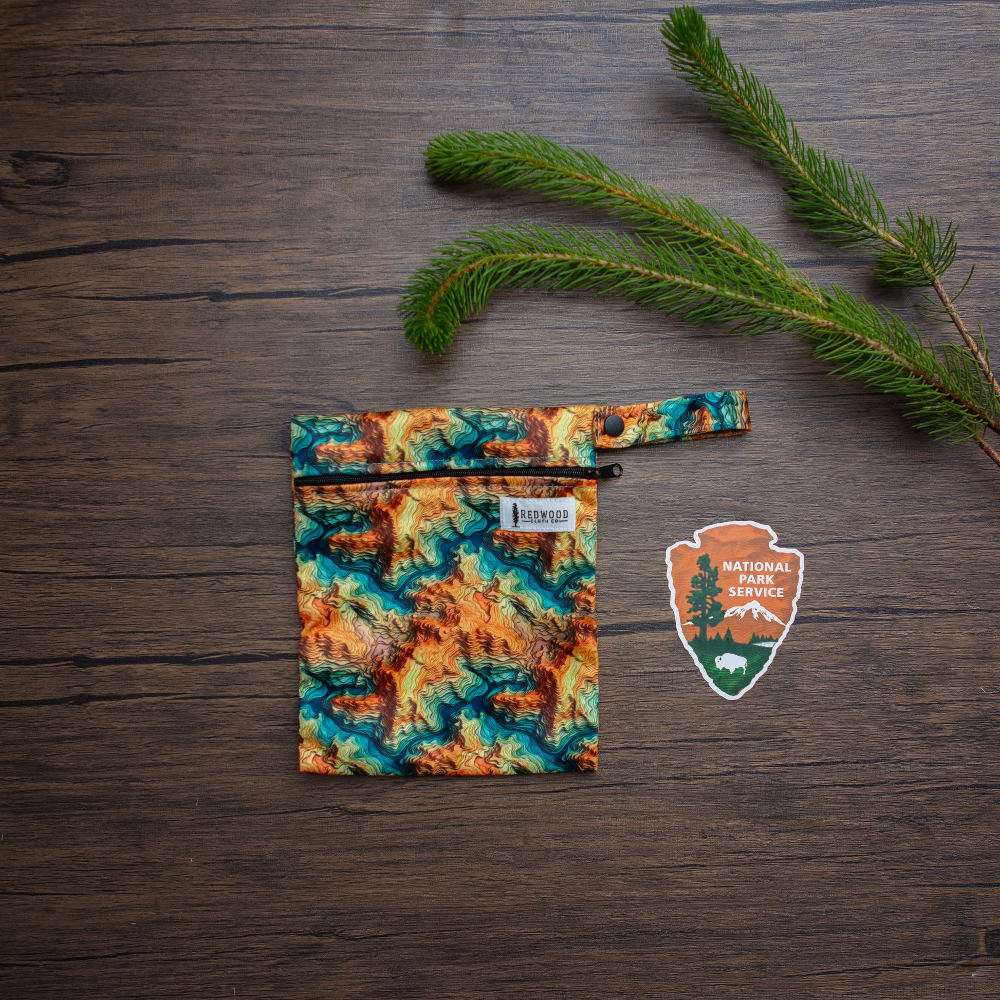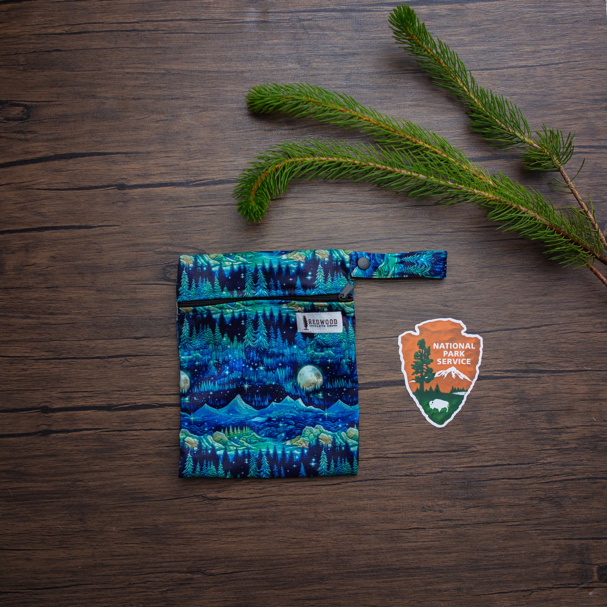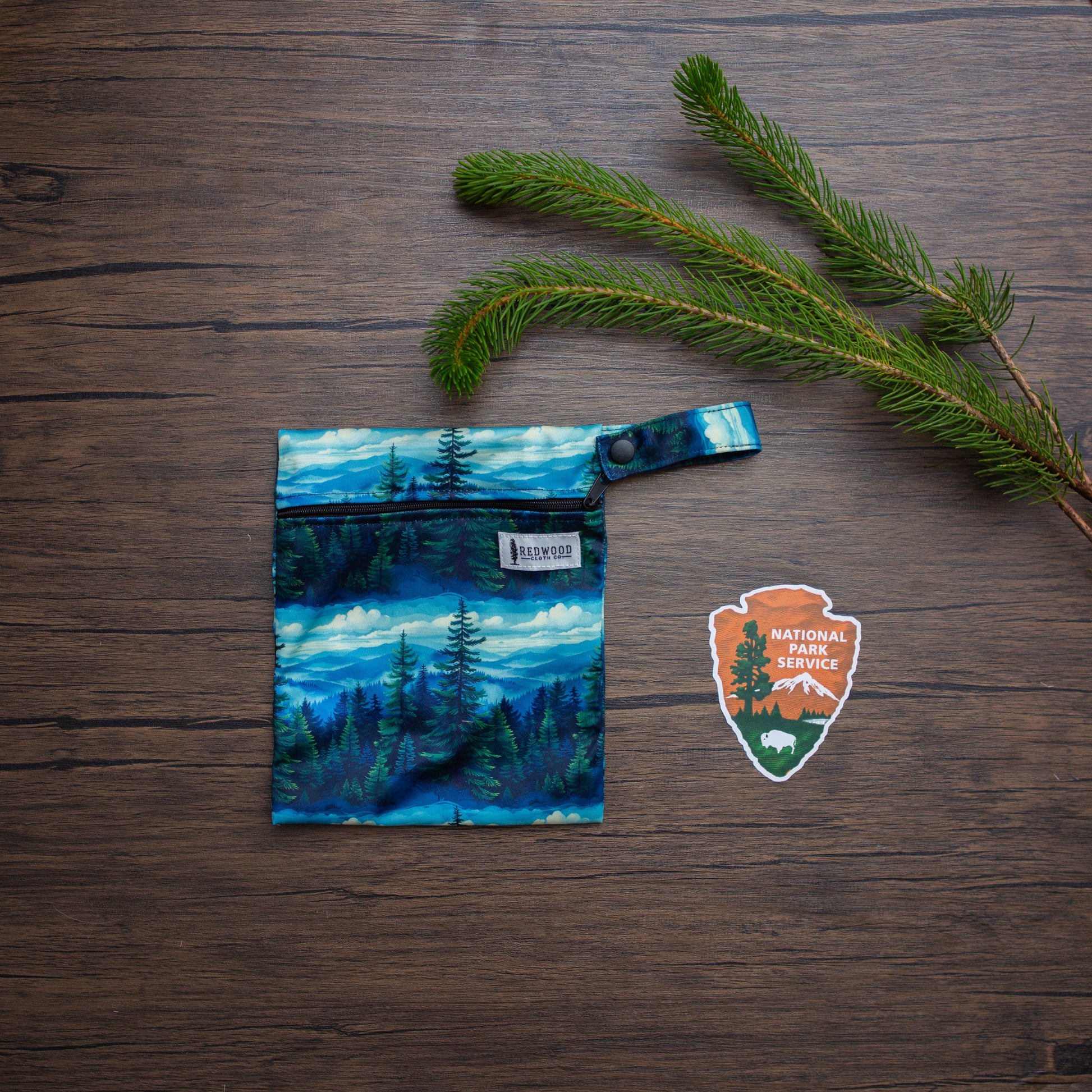 These little bags are made from PUL fabric, with a snap handle, sturdy black zipper, and have plenty of room for snacks, small items in your luggage, one dirty diaper...or whatever else you can think to use them for!